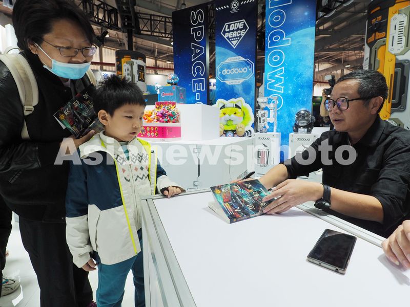 2024年4月28日,北京首钢国际会展中心,2024中国科幻大会“潮幻奇遇季”上,科幻作家刘慈欣为读者签字。