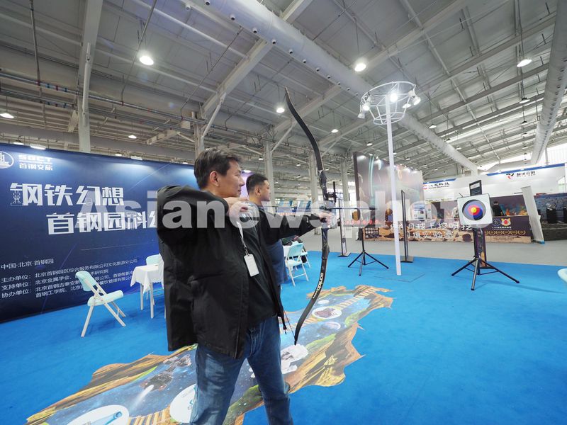 2024年4月28日,北京首钢国际会展中心,观众在2024中国科幻大会“潮幻奇遇季”上体验“AI射箭”。