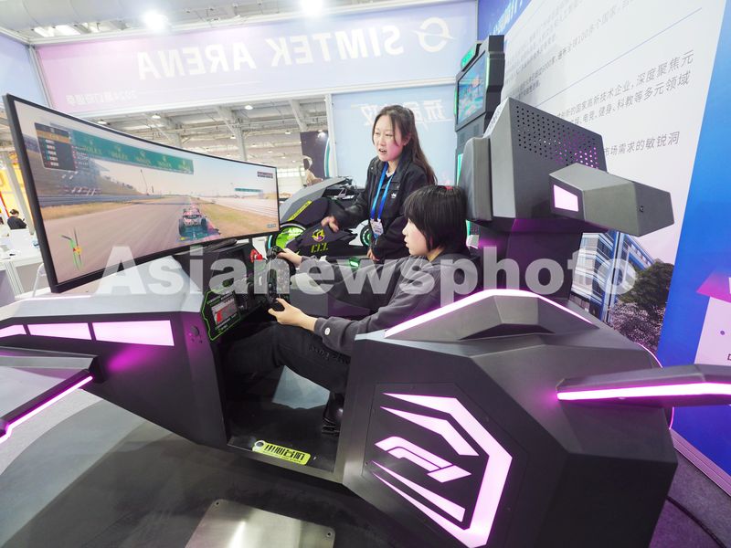 2024年4月28日,北京首钢国际会展中心,观众在2024中国科幻大会“潮幻奇遇季”上体验“体感F1赛车”。