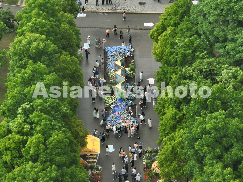 2024年4月28日,世界花园大会武汉会场开幕在武汉园博园、沙湖公园开展,各色鲜花竞相绽放,市民游客穿梭于各展区之间,拍照打卡。