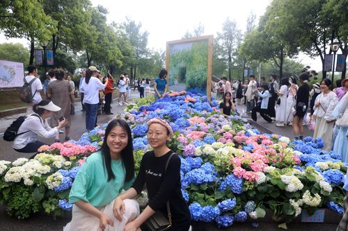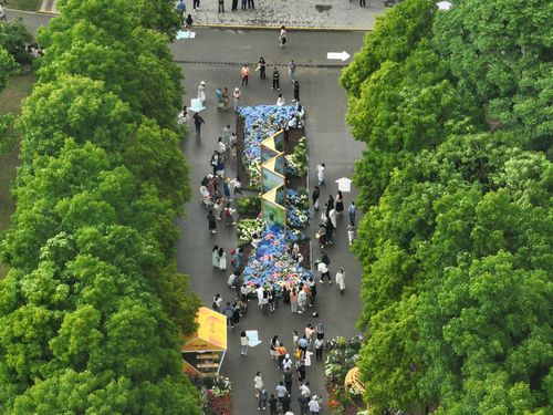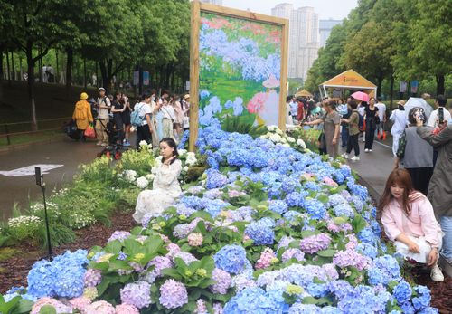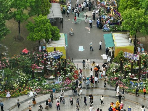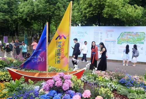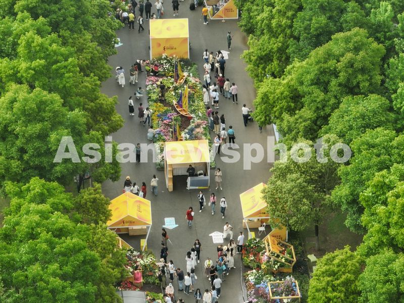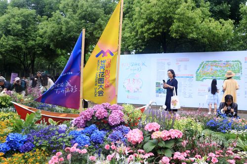 2024年4月28日,世界花园大会武汉会场开幕在武汉园博园、沙湖公园开展,各色鲜花竞相绽放,市民游客穿梭于各展区之间,拍照打卡。