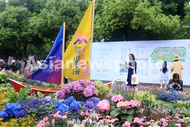 2024年4月28日,世界花园大会武汉会场开幕在武汉园博园、沙湖公园开展,各色鲜花竞相绽放,市民游客穿梭于各展区之间,拍照打卡。