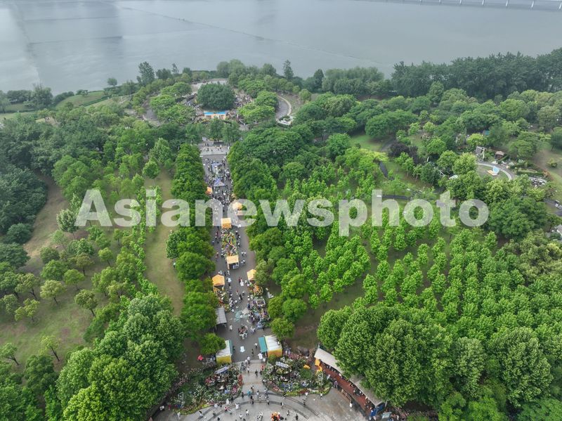 2024年4月28日,世界花园大会武汉会场开幕在武汉园博园、沙湖公园开展,各色鲜花竞相绽放,市民游客穿梭于各展区之间,拍照打卡。