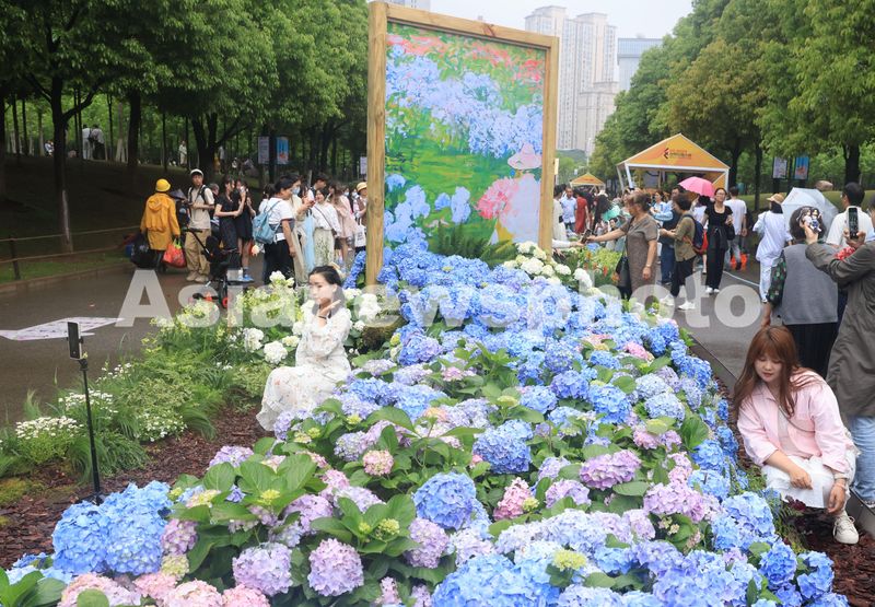 2024年4月28日,世界花园大会武汉会场开幕在武汉园博园、沙湖公园开展,各色鲜花竞相绽放,市民游客穿梭于各展区之间,拍照打卡。