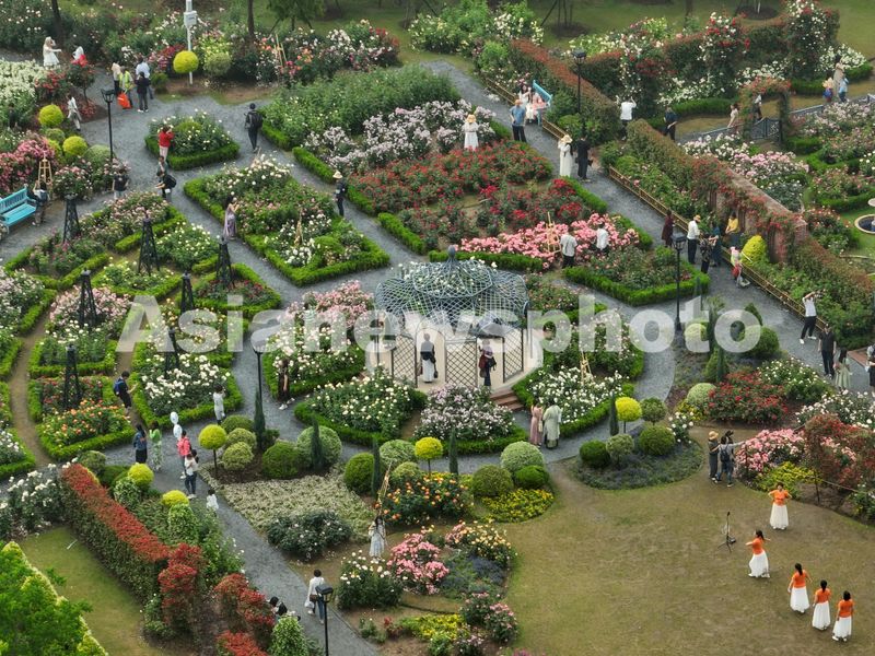 2024年4月28日,世界花园大会武汉会场开幕在武汉园博园、沙湖公园开展,各色鲜花竞相绽放,市民游客穿梭于各展区之间,拍照打卡。