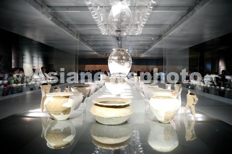 图片说明:2024年4月26日,参观者在四川省广汉市三星堆博物馆内欣赏展品。