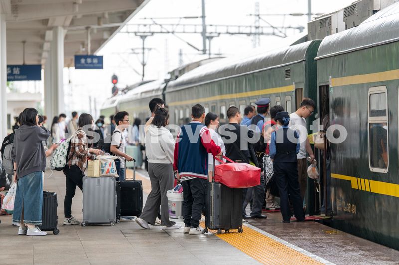 2024年4月30日,浙江省铁路金华站站台上,旅客有序上车。