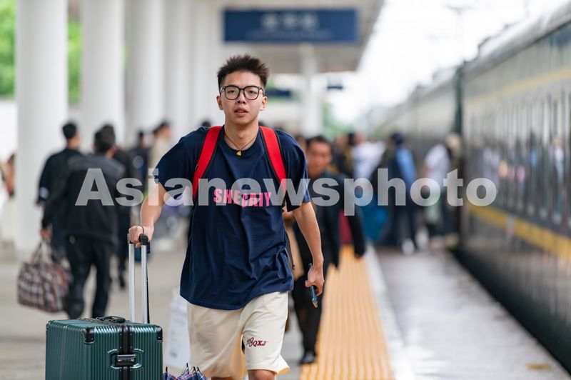 2024年4月30日,浙江省铁路金华站站台上,旅客有序上车。