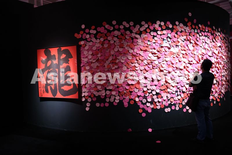 图片说明:4月29日,游客在西安美术馆参观“岁岁龙YUAN——龙主题艺术作品特展”。