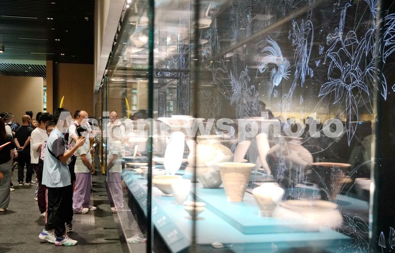图片说明:2024年4月26日,参观者在四川省广汉市三星堆博物馆内欣赏展品。