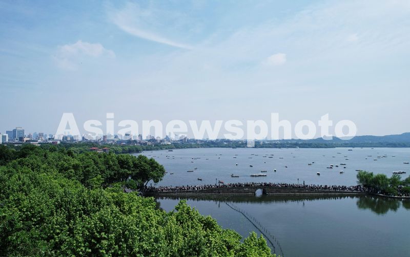 杭州西湖迎来“五一”假期旅游高峰 断桥“人潮”涌动 查看组图
