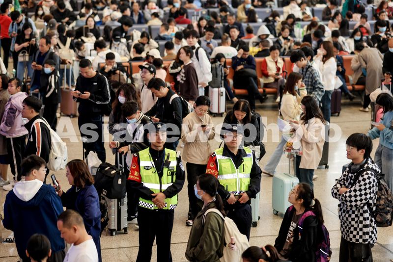 5月1日,旅客在湖北武汉站准备乘车出行。