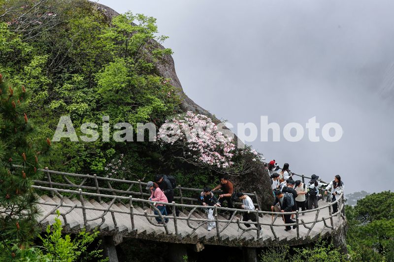 2024年5月1日,游客在安徽省黄山风景区游玩赏景。