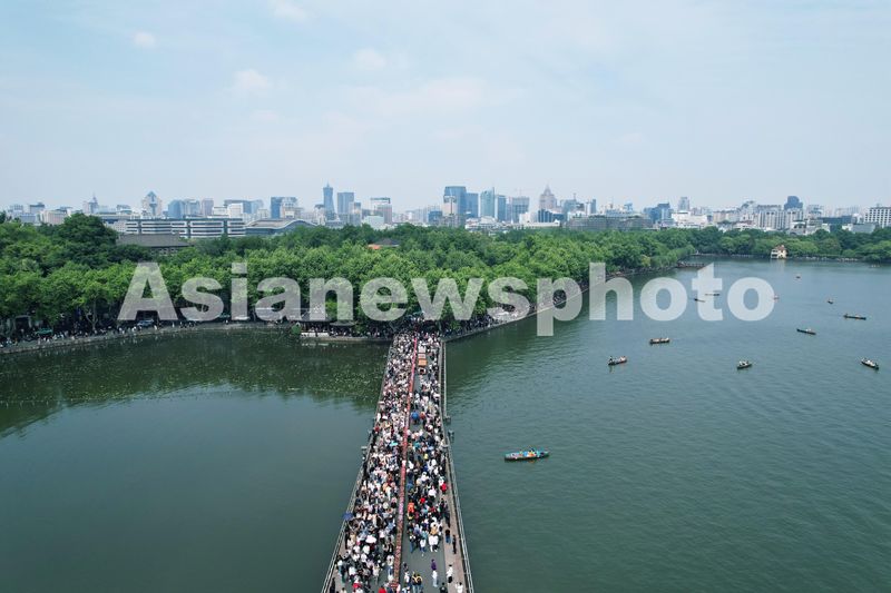 杭州西湖迎来“五一”假期旅游高峰 断桥“人潮”涌动 查看组图