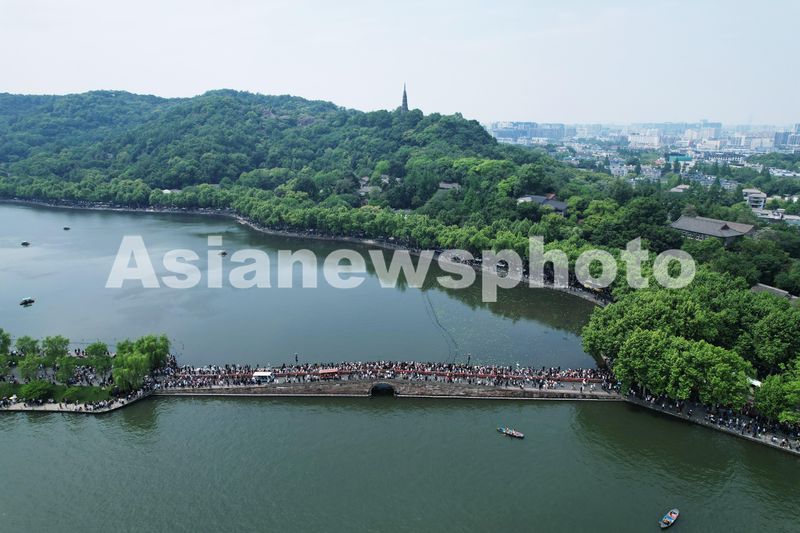 杭州西湖迎来“五一”假期旅游高峰 断桥“人潮”涌动 查看组图