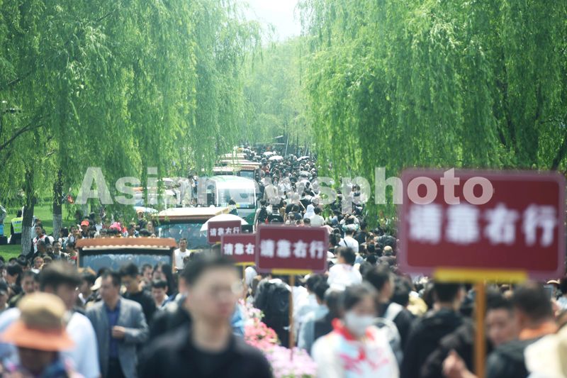 图片说明:2024年5月1日,杭州西湖白堤上人流如织。