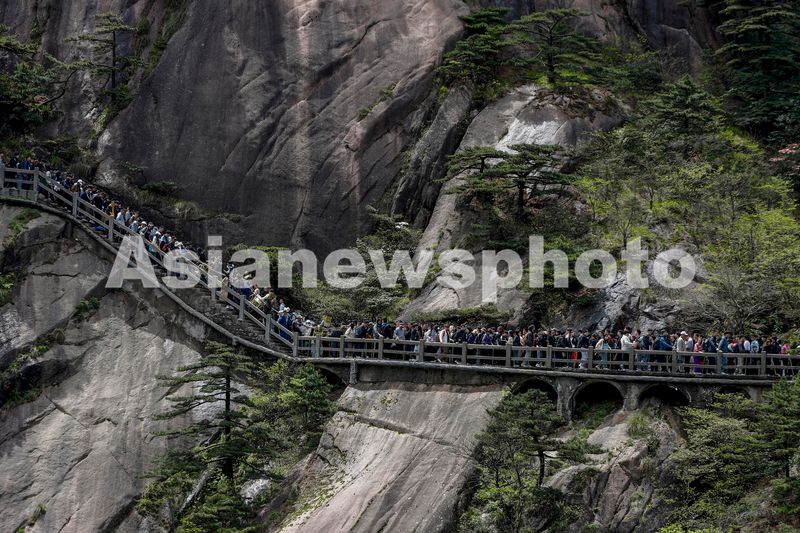 2024年5月1日,游客在安徽省黄山风景区游玩赏景。