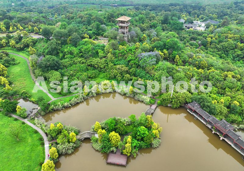 图片说明:5月1日,无人机镜头下,素有“十里绿色长廊”、“城市天然氧吧”等美誉的四川省泸州市张坝桂圆林公园,绿意盎然景色如画。