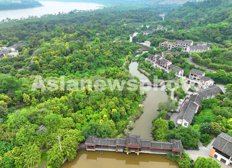 图片说明:5月1日,无人机镜头下,素有“十里绿色长廊”、“城市天然氧吧”等美誉的四川省泸州市张坝桂圆林公园,绿意盎然景色如画。
