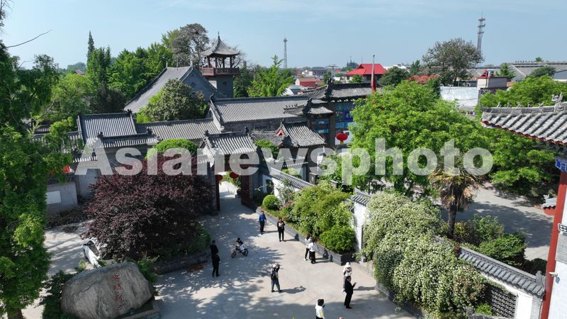 2024年5月2日,游客在山东省临沂市郯城县马头古镇风景区游玩(无人机照片)。