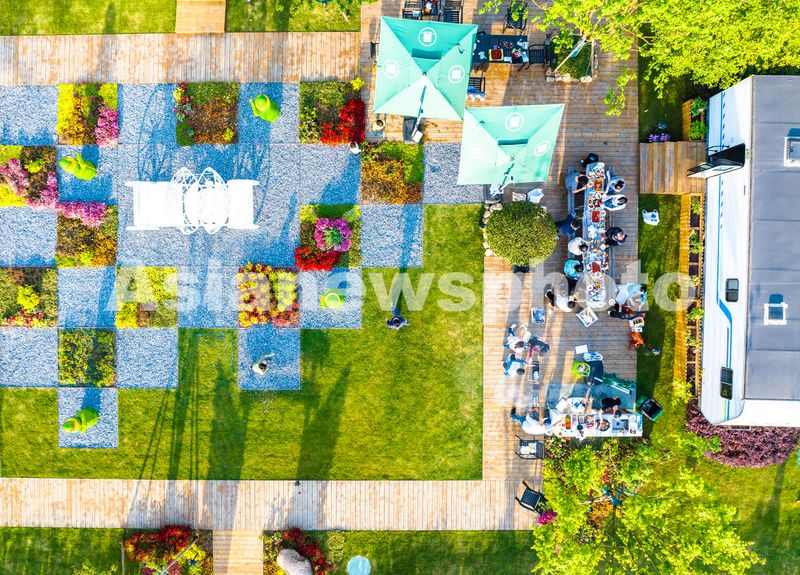 2024年5月1日,在安徽省芜湖市繁昌区孙村镇中分村途居马仁山房车露营地,数十辆房车和多顶露营帐篷错落有致分布在山林竹海间,优美的乡村生态环境,吸引了众多游客前来休闲游玩,欢度假日生活。