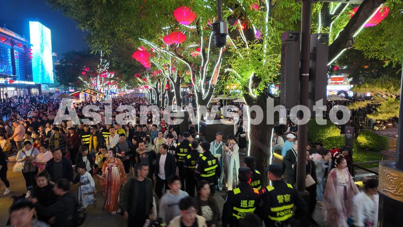 西安大唐不夜城景区迎来人流高峰 查看组图