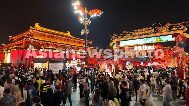 西安大唐不夜城景区迎来人流高峰 查看组图