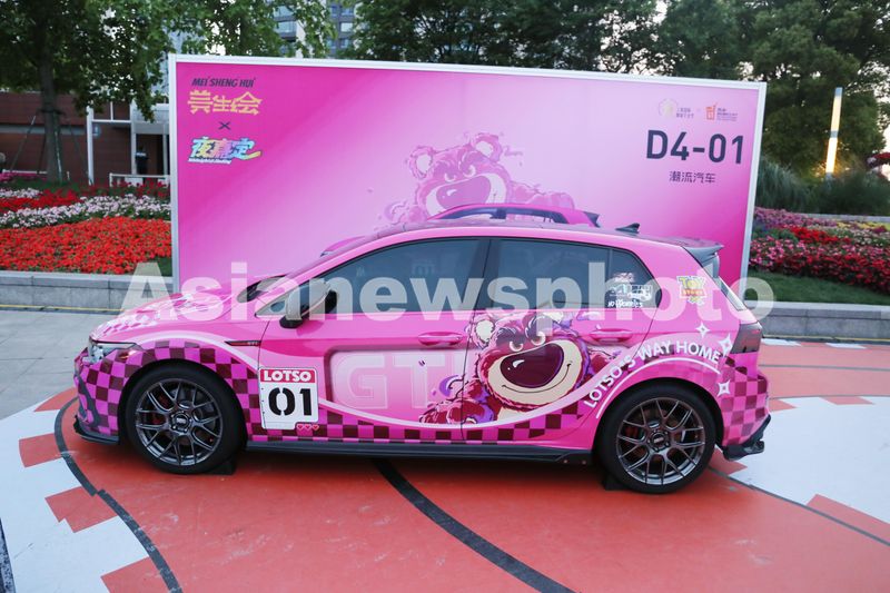 图片说明:2024年5月1日,上海,五五购物节户外潮流车展上,二次元动漫痛车(时尚彩绘车)吸引市民游客
