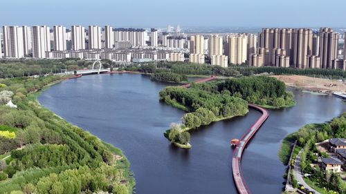 2024年5月13日,沈阳市沈北新区蒲河生态廊道旁,碧水悠悠,绿荫葱茏,草木繁茂,呈现出一幅迷人的生态画卷,展现了沈阳市近年来在水资源和湿地保护方面的显著成效。
