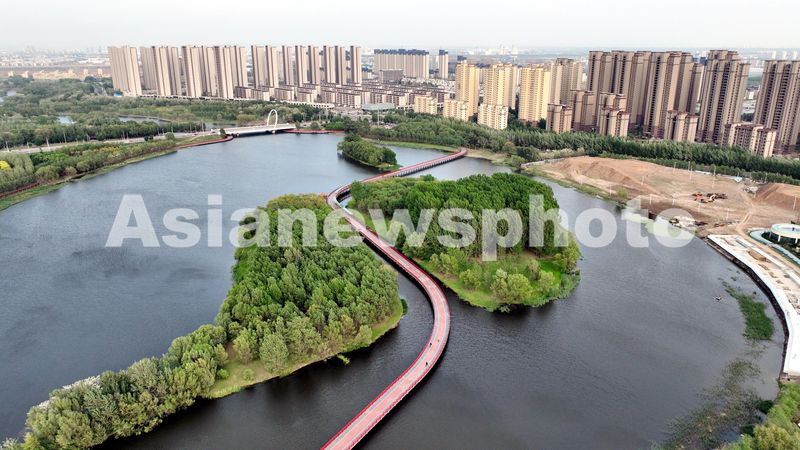 2024年5月13日,沈阳市沈北新区蒲河生态廊道旁,碧水悠悠,绿荫葱茏,草木繁茂,呈现出一幅迷人的生态画卷,展现了沈阳市近年来在水资源和湿地保护方面的显著成效。