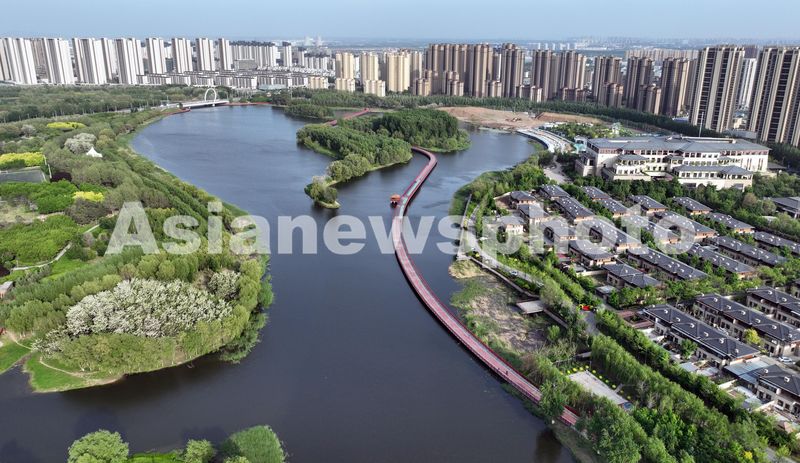 2024年5月13日,沈阳市沈北新区蒲河生态廊道旁,碧水悠悠,绿荫葱茏,草木繁茂,呈现出一幅迷人的生态画卷,展现了沈阳市近年来在水资源和湿地保护方面的显著成效。