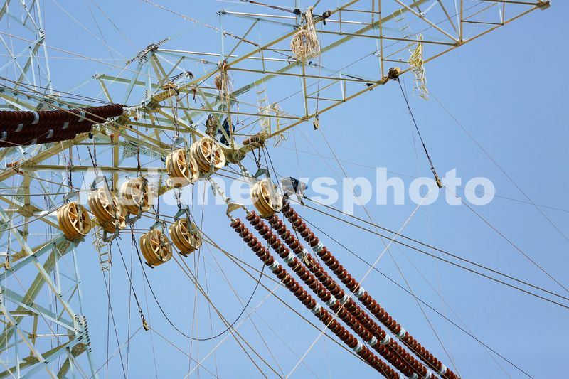 2024年5月16日,电力工人正在位于宁夏固原市隆德县境内的“宁电入湘”工程宁2标段进行导线展放作业。当日,随着电力工人将最后一根导线展放完成,标志着“宁电入湘”工程宁夏段#613-#619架线段最大难度线路跨越完成贯通。这也是近年来宁夏电网首次实施“4条交流线路+1条高速公路”同跨施工作业。