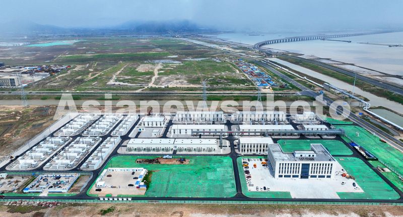 图片说明:2024年5月21日,位于连云港市连云区的中核田湾200万千瓦滩涂光伏陆上220千伏升压站正在扫尾施工。