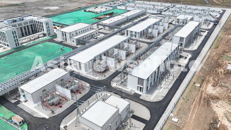 图片说明:2024年5月21日,位于连云港市连云区的中核田湾200万千瓦滩涂光伏陆上220千伏升压站正在扫尾施工。
