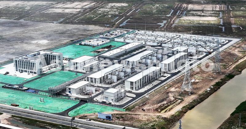 图片说明:2024年5月21日,位于连云港市连云区的中核田湾200万千瓦滩涂光伏陆上220千伏升压站正在扫尾施工。