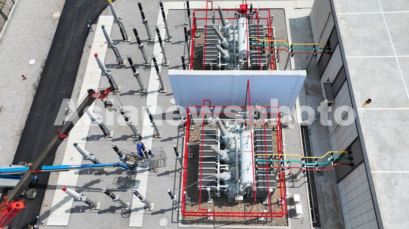 图片说明:2024年5月21日,位于连云港市连云区的中核田湾200万千瓦滩涂光伏陆上220千伏升压站正在扫尾施工。