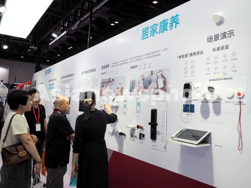 2024年5月21日,北京国家会议中心第十届中国国际养老服务业博览会,观众在参观“居家康养智能产品”。