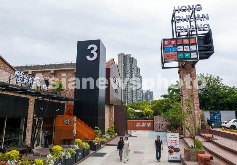 图片说明:2024年5月22日,游客在由无锡船厂旧址改造而来的红船场商业园区休闲游玩。