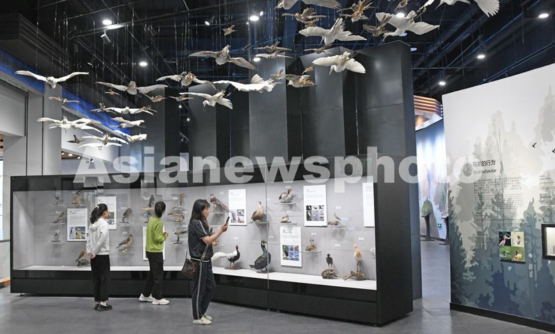 图片说明:2024年5月22日,市民在浙江省台州市仙居生物多样性博物馆参观生物展品,学习生物多样性知识。