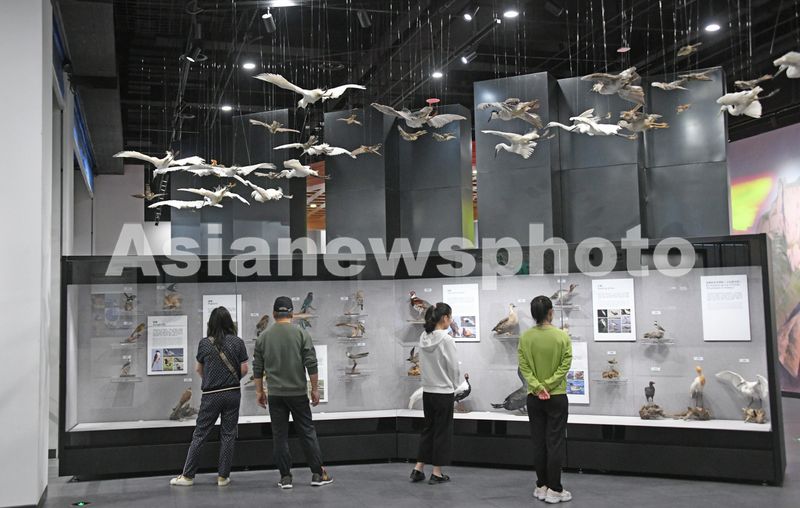 图片说明:2024年5月22日,市民在浙江省台州市仙居生物多样性博物馆参观生物展品,学习生物多样性知识。