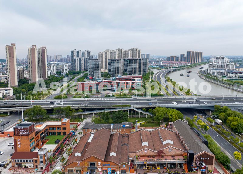 图片说明:2024年5月22日,拍摄的由无锡船厂旧址改造而来的红船场商业园区(无人机照片)。