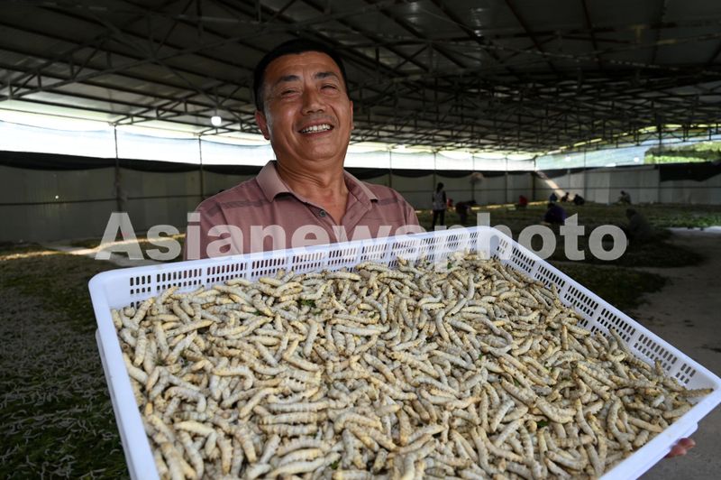 图片说明:2024年5月22日,在四川省内江市东兴区双桥镇元觉村,蚕农正在分拣僵蚕。