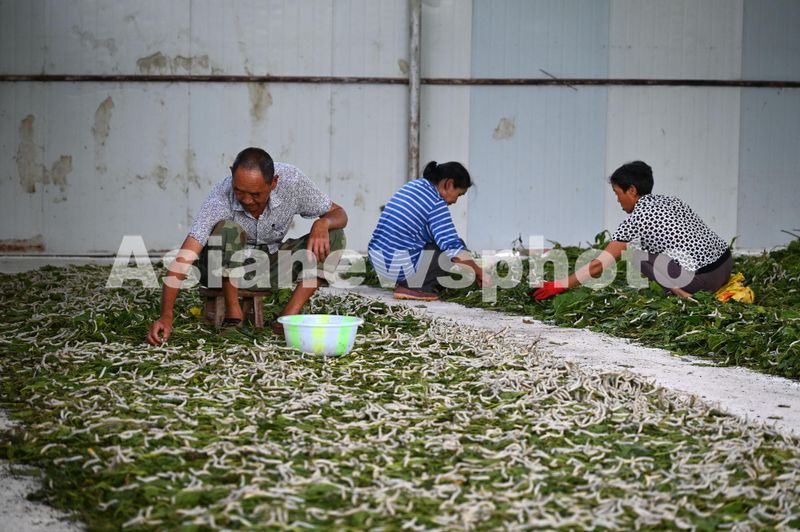 图片说明:2024年5月22日,在四川省内江市东兴区双桥镇元觉村,蚕农正在分拣僵蚕。