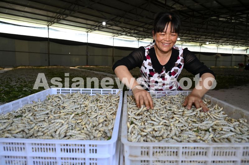 图片说明:2024年5月22日,在四川省内江市东兴区双桥镇元觉村,蚕农正在分拣僵蚕。
