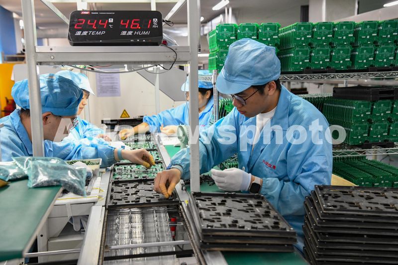 图片说明:2024年5月24日,浙江省金华市浙江八达电子仪表有限公司数字化车间生产线上,工人在赶制电能表订单。