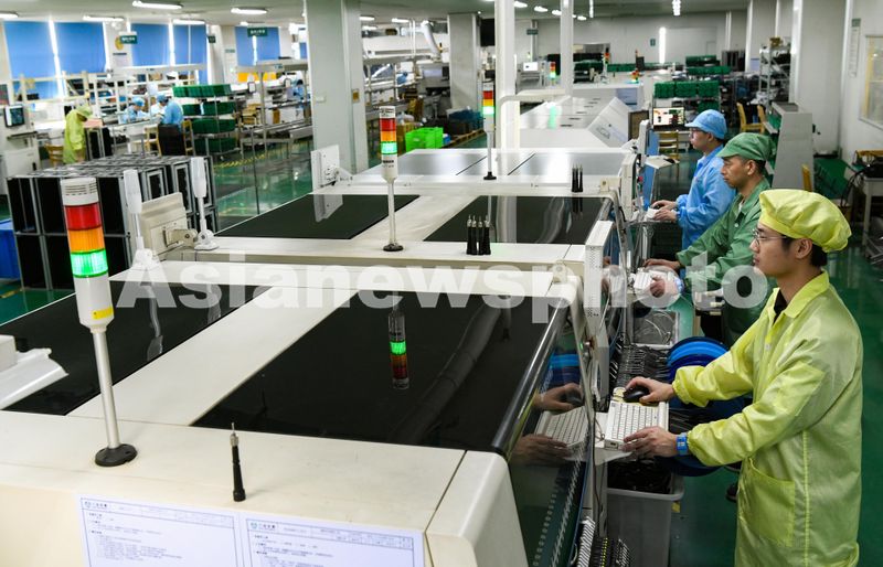 图片说明:2024年5月24日,浙江省金华市浙江八达电子仪表有限公司数字化车间生产线上,工人在赶制电能表订单。