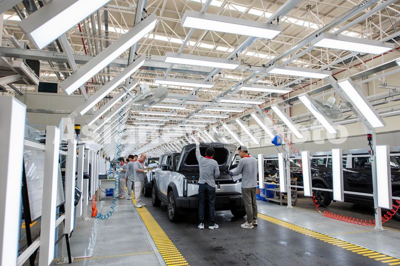 图片说明:2024年5月23日,在安徽省芜湖市奇瑞新能源爱咖生态科技有限公司总装车间里,工人正在进行新能源汽车组装作业。