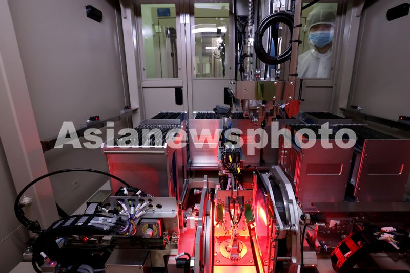 图片说明:2024年5月27日,位于福州高新区生物医药和机电产业园的福建兆元光电有限公司,自动化生产设备在生产芯片产品。