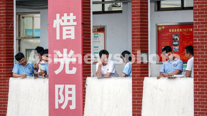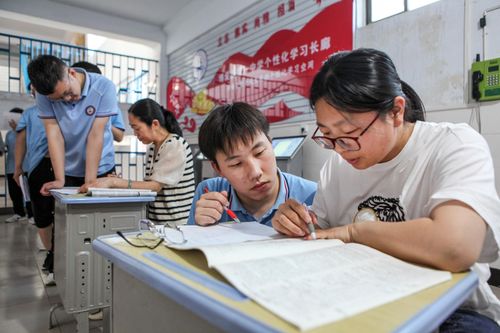 图片说明:5月27日晚上,在河南省焦作市博爱县第一中学,教师们“摆摊”,为学生答疑解惑。