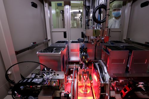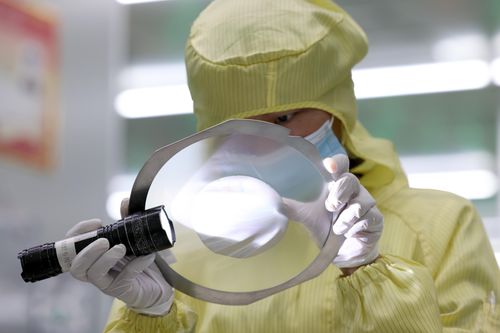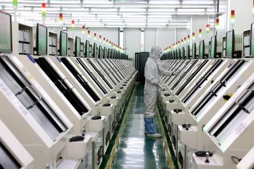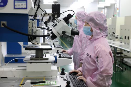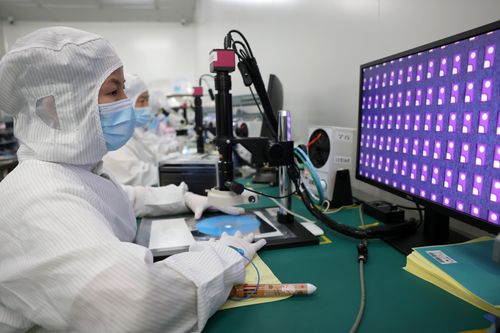 图片说明:2024年5月27日,位于福州高新区生物医药和机电产业园的福建兆元光电有限公司,工作人员在生产线上赶制订单。